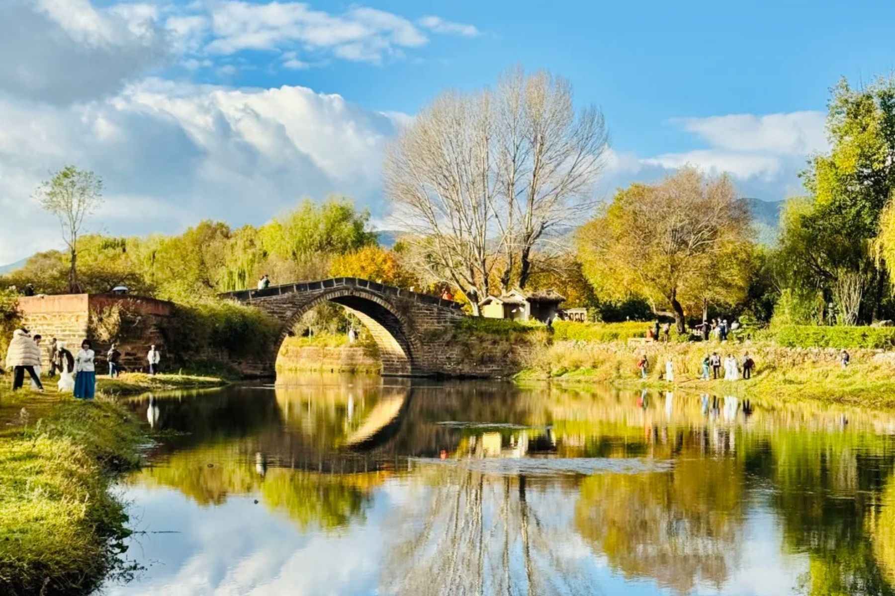 - Cầu Hưng Thịnh – Đoàn tiếp tục ghé thăm cây cầu nổi tiếng với khung cảnh nên thơ giữa trời đất Đại Lý. Đây là điểm check-in được giới trẻ yêu thích nhờ nền núi non – mặt nước hòa quyện, đặc biệt đẹp vào thời điểm cuối tháng 2 – đầu tháng 3 khi thời tiết trong trẻo, ánh sáng dịu nhẹ.