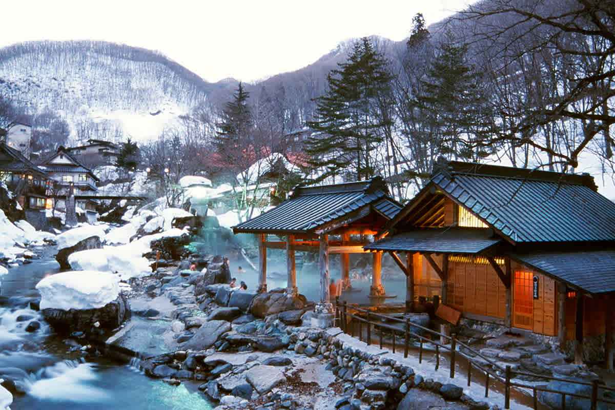 - Takaragawa Onsen – là một trong những khu suối nước nóng lộ thiên lớn nhất ở Nhật Bản, khu suối nước nóng ẩn mình giữa thiên nhiên, tiếng nước chảy róc rách cùng thanh âm của những chú chim hót nơi đây sẽ mang đến cho quý khách cảm giác thật sự thoát khỏi cuộc sống thường nhật. Cảm giác ngâm mình trong làn nước nóng ấm áp giữa khung cảnh mùa đông lãng mạn là một trải nghiệm vô cùng thư giãn và thoải mái. Không những thế, nước nóng có thể giúp giảm căng thẳng, cải thiện lưu thông máu và giảm đau nhức.