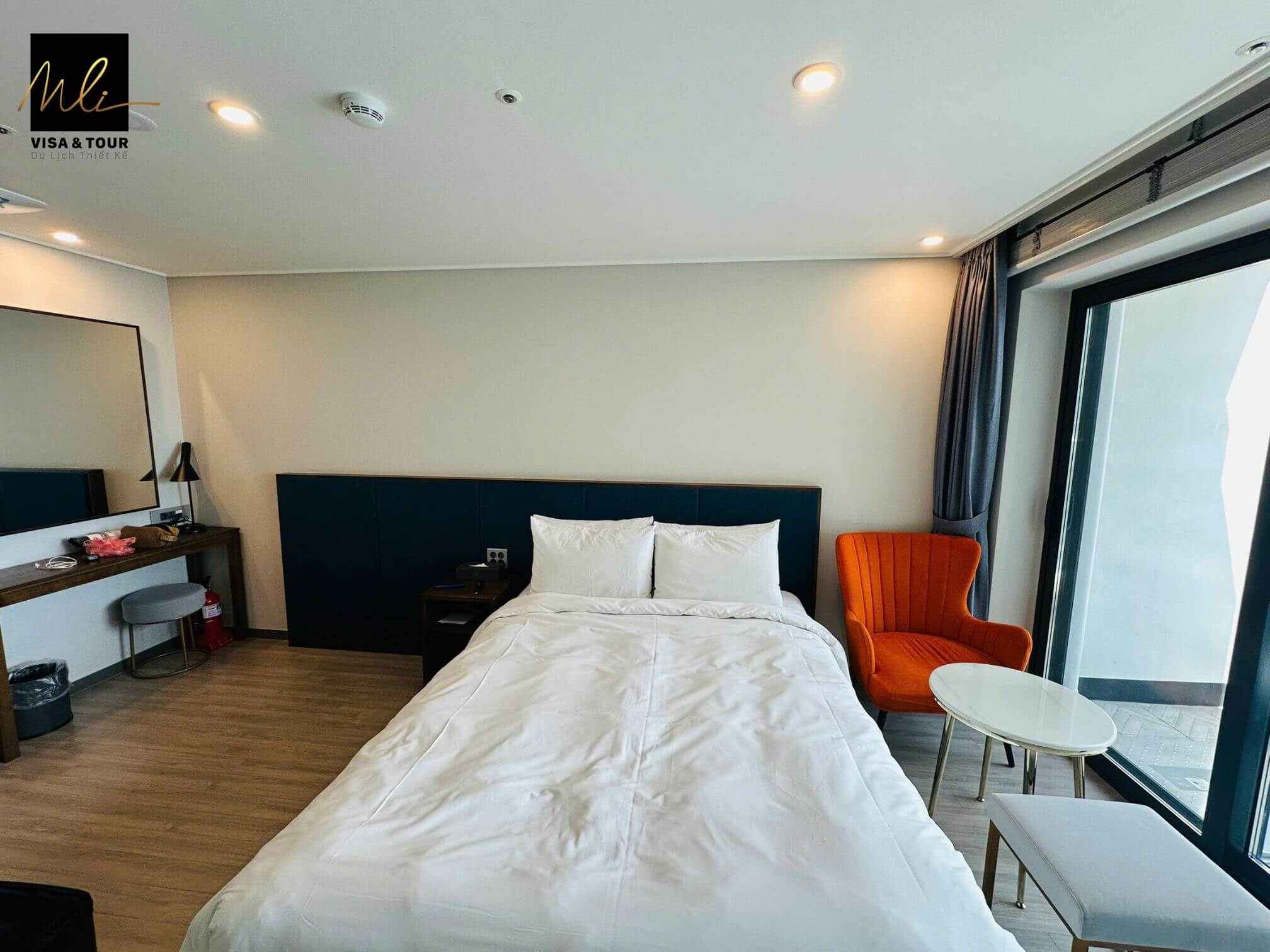 Đoàn nghỉ tại các khách sạn tiêu chuẩn 4 sao trở lên. Tại Seoul, khách sạn nằm ở khu trung tâm, thuận tiện cho việc tham quan và mua sắm. Riêng tại Busan, nơi lưu trú chỉ cách biển vài bước chân, giúp cả nhà dễ dàng tận hưởng không khí trong lành và khung cảnh bình yên vào mỗi sáng. Hướng dẫn viên đồng hành xuyên suốt hành trình là người có kinh nghiệm trong việc chăm sóc các đoàn gia đình, đặc biệt là có khả năng điều phối và hỗ trợ tốt cho cả người lớn và trẻ em, đảm bảo sự hài hòa, an toàn và thoải mái trong từng chặng di chuyển.