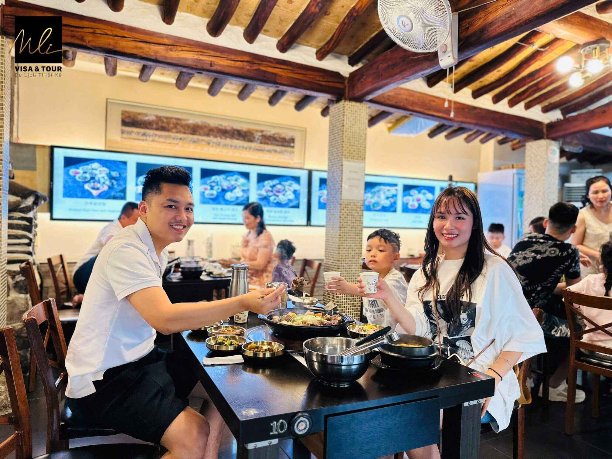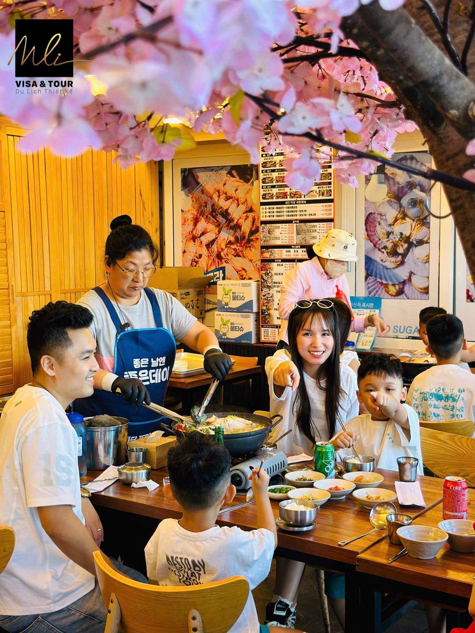 Một trong những yếu tố tạo nên sự thành công cho tour của MLitravel chính là sự chuẩn bị kỹ lưỡng về dịch vụ. Từ khâu di chuyển, lưu trú cho đến ẩm thực đều được MLitravel lựa chọn và sắp xếp cẩn thận nhằm mang đến sự thoải mái và tiện lợi cao nhất cho gia đình.Toàn bộ hành trình được di chuyển bằng xe limousine riêng, giúp đảm bảo không gian riêng tư và sự linh hoạt về thời gian. Các bữa ăn được tổ chức tại những nhà hàng địa phương uy tín, phục vụ các món ăn Hàn Quốc truyền thống với hương vị chuẩn mực, phù hợp khẩu vị người Việt nhưng vẫn giữ trọn tinh thần bản địa.